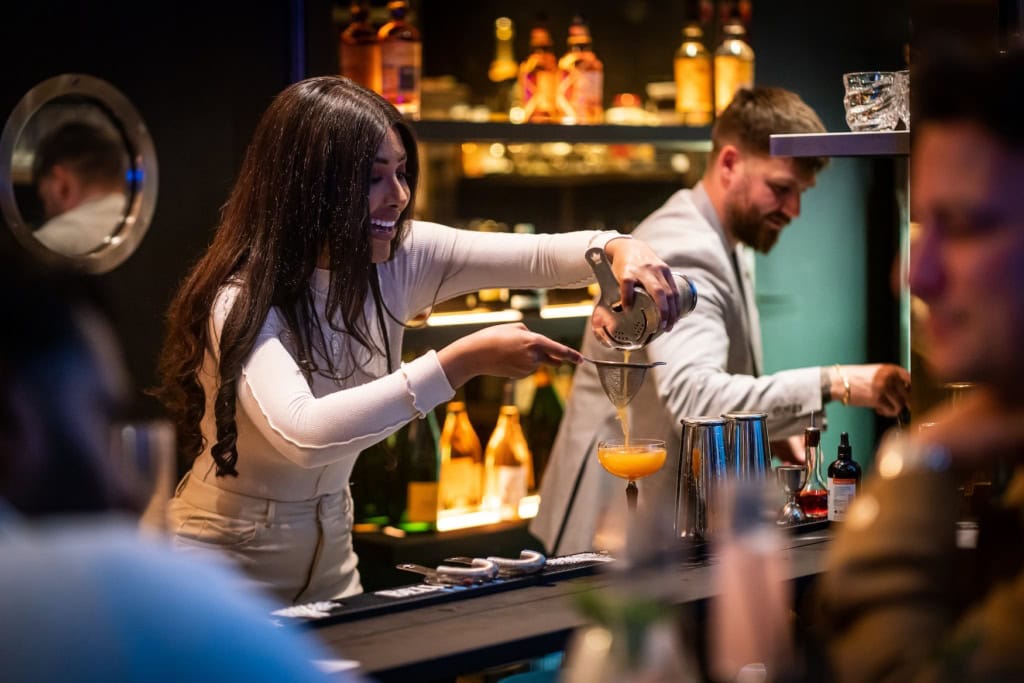 Gleich nebendran ist das »The Perception« der Place-to-be für Drinks. Die gemütlichen Sofaecken versprühen Gemütlichkeit mit einem großen Touch Glamour. Hinter der Bar werden feinste Cocktail-Kreationen gezaubert. Wer selbst ein paar leckere Rezepte lernen mag, der bucht einfach die Cocktail Masterclass.