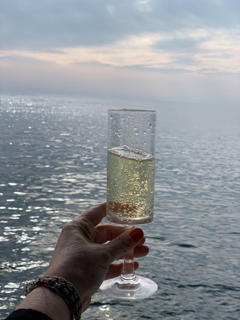 Die hoteleigene Motoryacht Lady IV hat Fahrt aufgenommen. Wind und Wellen geben sich gemäßigt, die Sonne brennt noch nicht erbarmungslos vom Himmel. Ein paar Gäste räkeln sich bereits am Bug des Bootes. Andere lassen sich auf dem Upperdeck ein Gläschen spanischen Cava und deutsche Schokolade kredenzen. Die Smartphones filmen und fotografieren unermüdlich, als die Lady IV den besten Blick auf das Alàbriga Hotel & Home Suites freigibt.