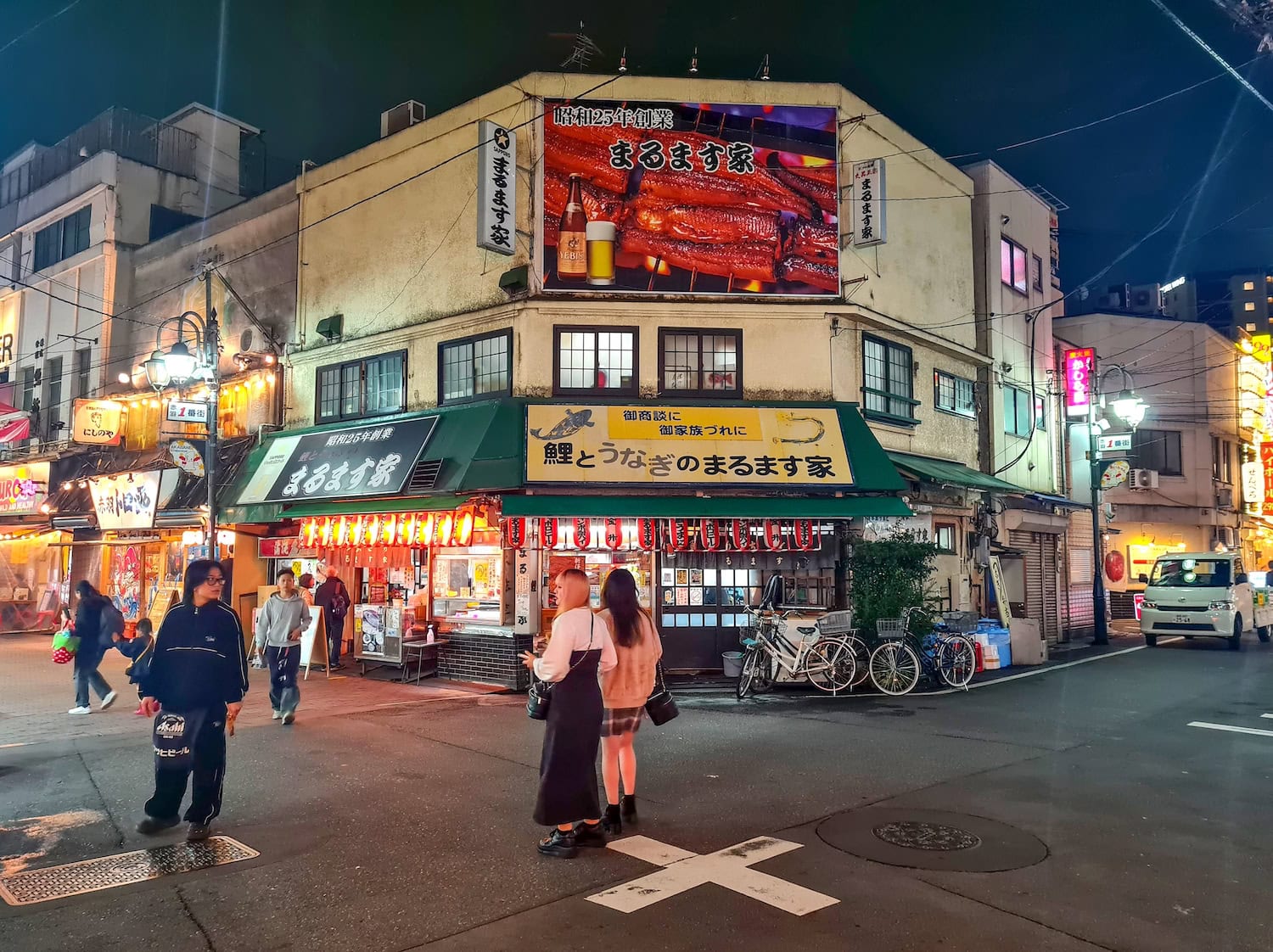 Feierabend in Akabane: Schon ab dem späten Nachmittag strömen die Berufstätigen aus den Bahnhöfen in die engen Gassen, wo sich Izakaya an Izakaya (eine japanische Kneipe) reiht. Hier wirkt Tokio plötzlich klein und vertraut, fast wie ein Dorf. Die Einkaufsstraße Akabane Ichibangai und das benachbarte OK Yokocho sind das Herz des Viertels, voll mit familiengeführten Lokalen, in denen seit Jahrzehnten gelacht, getrunken und Karaoke gesungen wird. Wer zwischen den Laternen und niedrigen Hausfassaden unterwegs ist, fühlt sich wie in eine andere Ära zurückversetzt.