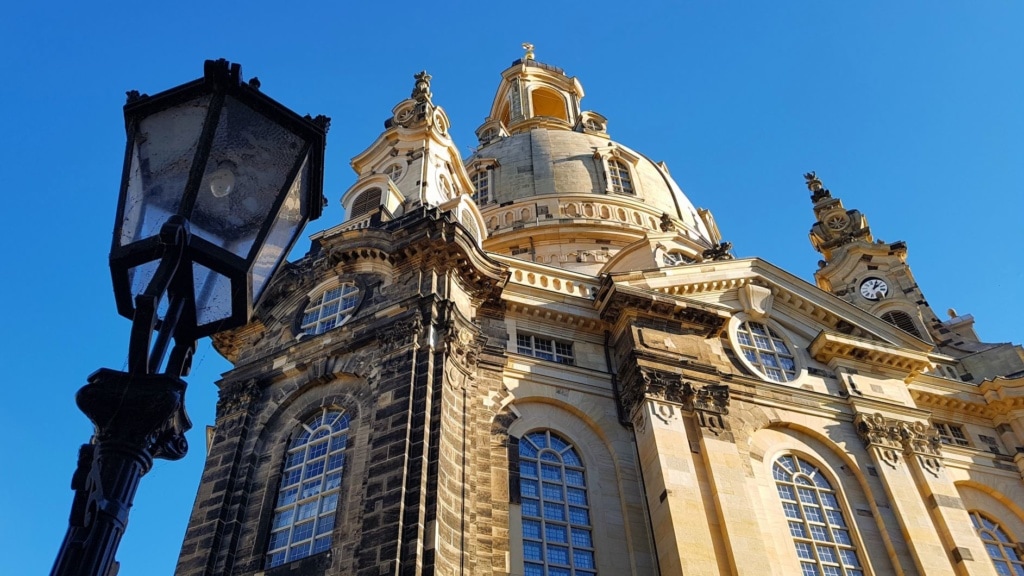 Klar kann man tagsüber einfach mal reinspazieren und sich dabei schon prima einen ersten Eindruck verschaffen. Wer aber mehr erfahren möchte, sollte an einer der Führungen teilnehmen. Besonders empfehlenswert ist der geführte Aufstieg zur Aussichtsplattform in 67 Meter Höhe. Warum? Auf dem Weg dorthin erhält man viele interessante Informationen über die Vergangenheit und Gegenwart der Frauenkirche. Und zur Belohnung für den Aufstieg einen zauberhaften Blick über Dresden und den Elbbogen.