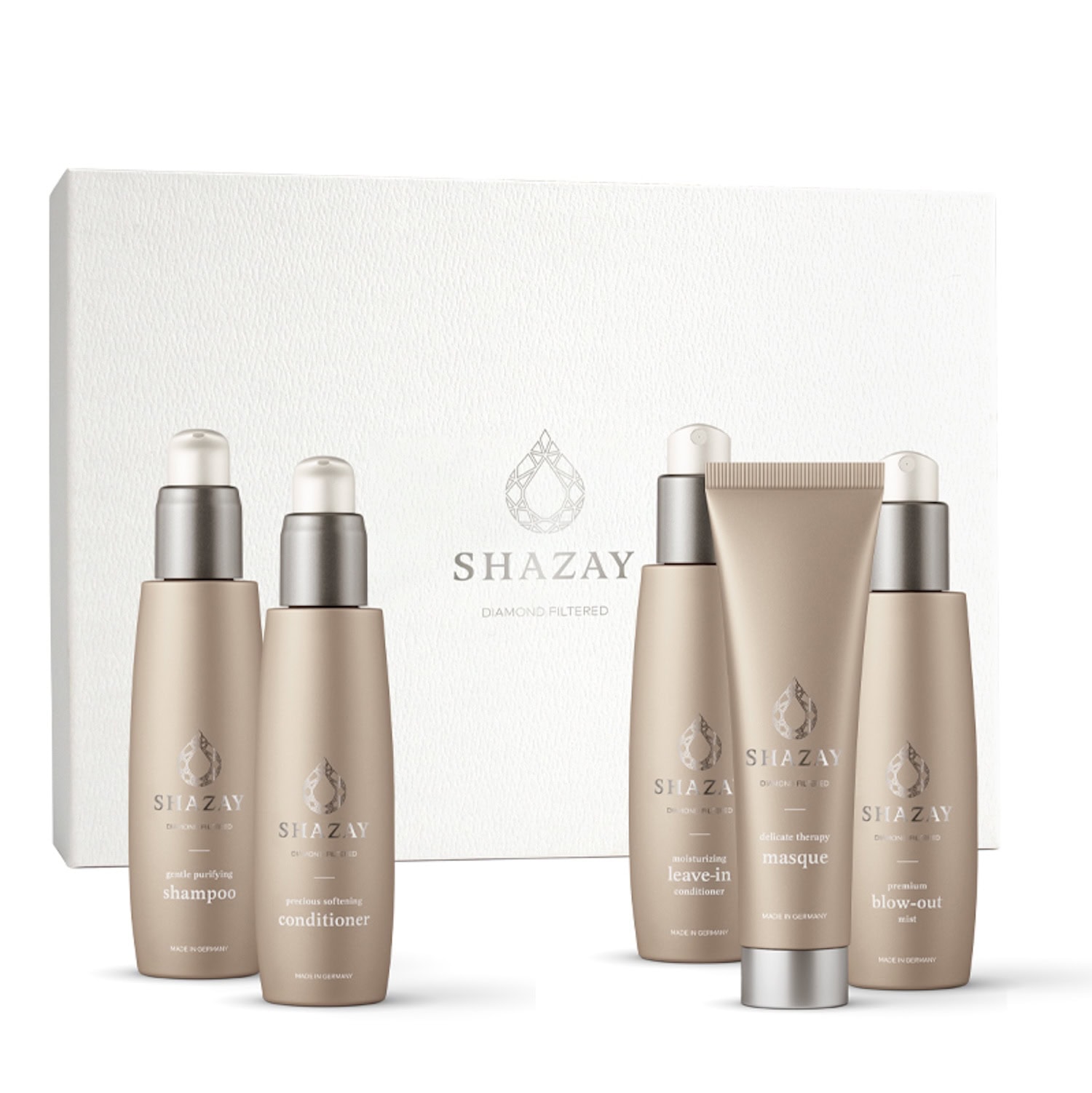 »SHAZAY« steht für hochwertige Haarpflege, die Natürlichkeit und Luxus verbindet. Herzstück der Formulierungen ist diamantgefiltertes Wasser, kombiniert mit ausgewählten Wirkstoffen für sichtbar gepflegtes, gesund aussehendes Haar. Die Produkte sind so konzipiert, dass sie reinigen, pflegen, schützen und stylen – und dabei ein leichtes, elegantes Haargefühl hinterlassen.