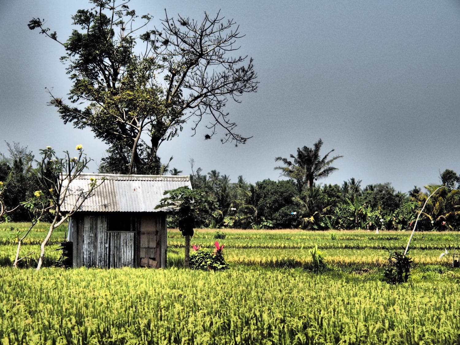 Am Nachmittag zeigen sich die Götter milde, als ich durch die Reisfelder radele: Das Licht ist sanft, die Temperaturen mild und das Grün noch satter. Ich bin im Hier und Jetzt. Inmitten der idyllischen Weite. Das Klackern der Reifen auf dem Schotterweg, das Schnattern der umherstolzierenden Enten und das Rascheln der bunten Fähnchen im Wind. Der Geruch nach nasser Erde und sattem Grün. Der Anblick der Szenerie aus Palmen und Himmel, die sich im Wasser der Reisfelder widerspiegelt. Kurz erahnt man, warum die Reisterrassen auch Himmeltreppen zu den Göttern genannt werden. Das ist Balis wahres Gesicht. Und tatsächlich: Die Insel schafft es mit Charme und Schönheit, den Geist von allen negativen Gedanken zu befreien – ob die Seele nun gereinigt ist oder nicht.