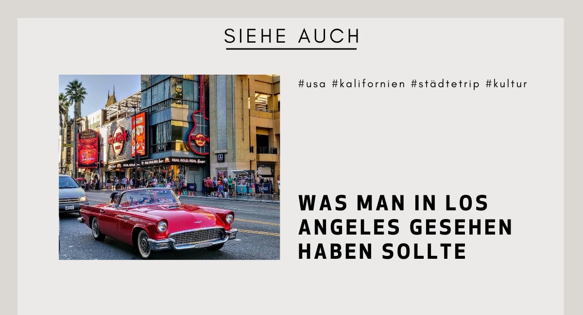 Los Angeles sind so viele Städte in einer, dass man mit einem Tag sicher nicht auskommt, um zumindest einiges zu sehen. Die schönsten Strände (und Sonnenuntergänge) findet man in Venice, Santa Monica und Malibu – aber auch südlich davon, in Huntington Beach oder Dana Point lohnt der Besuch am Strand. Für Filmfans ist der Besuch in Hollywood ein Muss: Am Walk of Fame kann man den Stern seines Lieblingsstars suchen, das TCL Chinese Theater sehen, in dem alljährlich die Oscars verliehen werden oder in den Universal Studios Hollywood den Besuch in einem Themenpark mit dem in einem Studio verbinden.