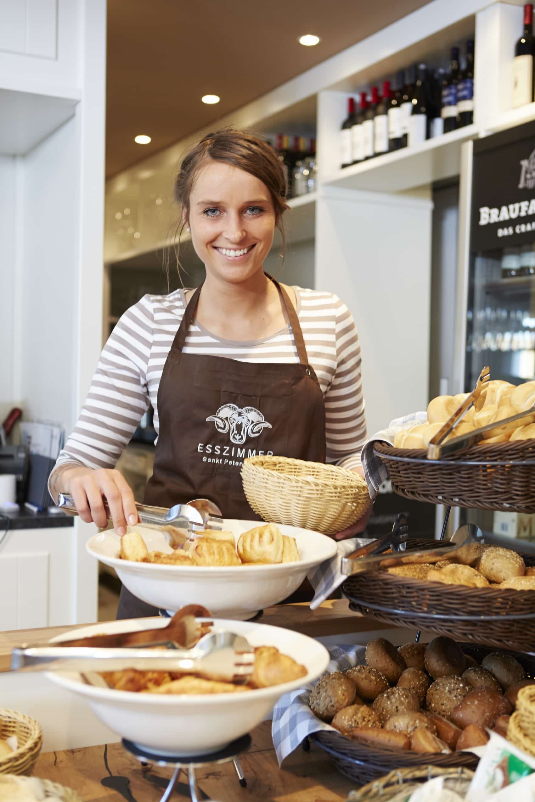 Ein anderer Grund ist die Verbundenheit zum Ort, die sich in den Fototapeten ausdrückt, die beispielsweise die typischen Lebensarten an der Nordseeküste erklären. Oder aber auch, dass die Zimmer und Suiten jeweils nach Mitgliedern der Eiderstedter Familien benannt sind – samt Erläuterung.
