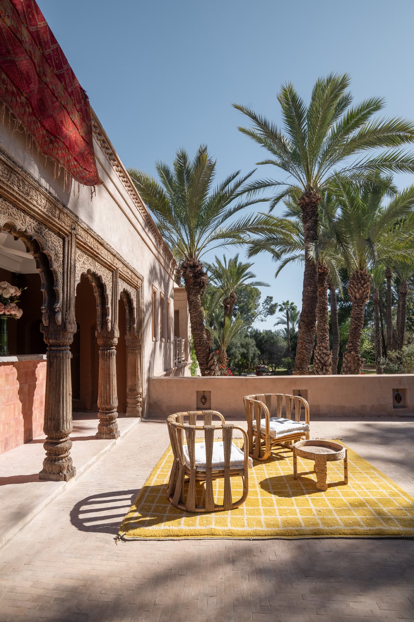 Wie schaut es aus? Der historische Kern der ehemaligen Privatresidenz wurde von den Architekten Nicolas Bodé und Quentin Wilbaux liebevoll restauriert und von den Eigentümern Gert-Jan und Corinne van den Bergh zusammen mit dem marokkanischen Künstler Samy Snoussi in eine lebendige Galerie mit überraschenden Details verwandelt. Die in den Räumen ausgestellten Werke zeitgenössischer nordafrikanischer und europäischer Künstler ergänzen die Verbindung von Architektur und Interieur perfekt. Alle Bereiche des Jnane Rumi sind unterschiedlich und außergewöhnlich gestaltet. Farben, Muster und ein wunderschöner Außenbereich mit sonnenreichen Terrassen und Pool fangen den Zauber Marrakeschs perfekt ein und verwandeln alles zusammen in einen wirklich besonderen Ort, den man am liebsten gar nicht mehr verlassen möchte