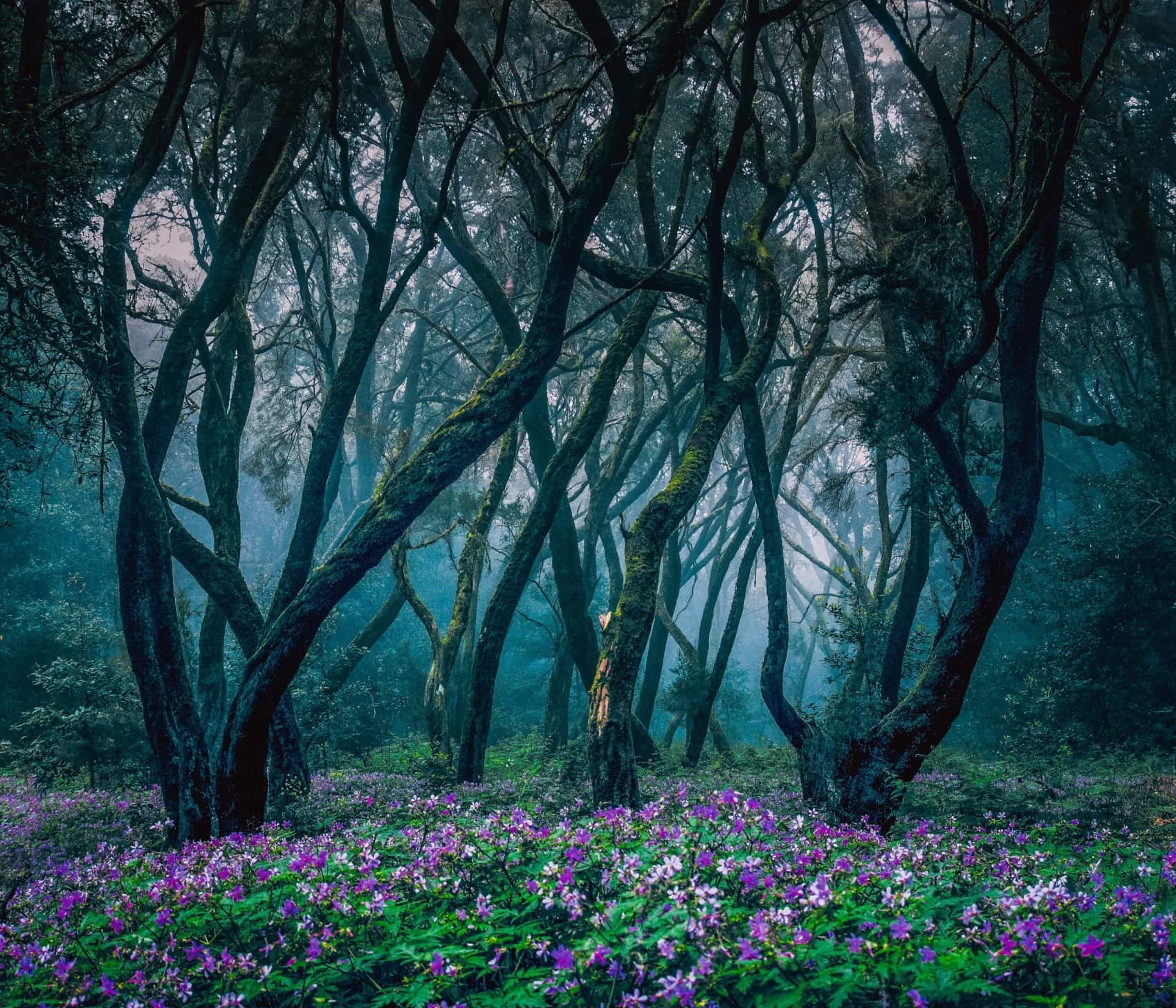 Wir tauchen ein in eine andere Welt, einen Zauberwald. Neben dem Wanderweg wachsen die gewundenen dicken Stämme kreuz und quer. Sie sehen aus wie ein einziges, riesiges Geflecht, als gehörten sie alle irgendwie zusammen. Mannshohe Farne und Erikagewächse haben sich dazwischen ihr Plätzchen gesichert. Knochige Finger mit flauschigen Moosbärten, die wie Hexenhaare an ihnen herabhängen, zeigen auf uns. Kletterpflanzen winden sich um das Holz.