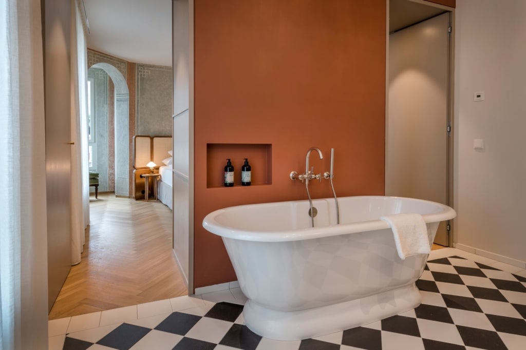 Was verspricht das Interieur? Das Hotel besteht aus einer historischen Jugendstilvilla aus dem Jahr 1908. Vintage-Fans dürften sich in den beiden 75 Quadratmeter großen Apartments in der Jugendstilvilla wohlfühlen. Neben freistehender Badewanne, teilweise freigelegter, historischer Wandbemalung und hohen Decken ergänzt ein ausgesuchtes altes Möbelstück die Einrichtung der Zimmer.
