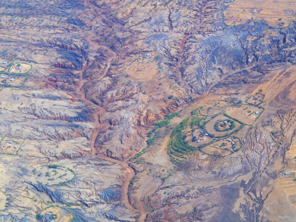 Tiefe Krater des Ngorongoro-Nationalparks gleiten unter mir vorüber, hin und wieder ebnet sich das Land – Plateaus, vereinzelt bestückt mit einem Massai-Dorf. Von oben sehen die kreisrunden Häuseransammlungen aus wie mystische Kornkreise. Wie es wohl ist, dort unten einsam in der Savanne mit seinen Rinderherden zu leben?