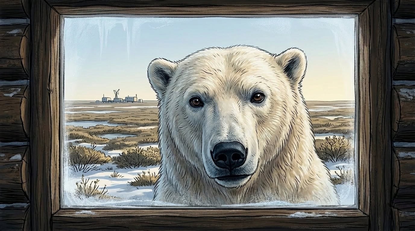In der Lodge entstand währenddessen eine kleine Fotosession. Bewohner standen an den Fenstern, Kameras klickten im Dauerbetrieb. Zwei Eisbären direkt auf der Veranda sehen Gäste schließlich auch in der Tundra nicht jeden Tag.
